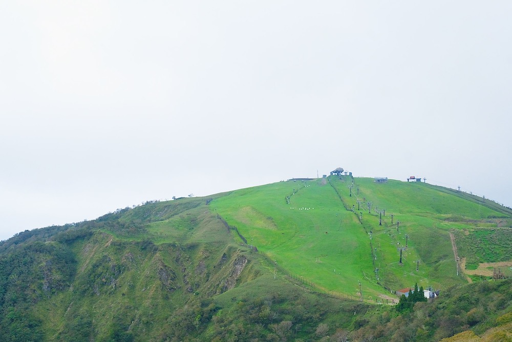 遠くに見えるのは蓬莱山。ロープウェイ山頂駅から2つのリフトを乗り継いで行くことができ、蓬莱山の展望台からは京都や大阪、日本海側の山々までの大パノラマを一望できるそうですよ。