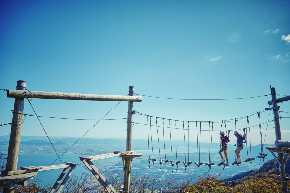 びわ湖の絶景を独り占めできるという噂を聞きつけ、ビワイチ旅の〆に訪れたのは『びわ湖テラス』! 2016年にオープンした話題のスポットで、湖西岸にある高原リゾート施設『びわ湖バレイ』の山頂付近に開設された展望施設です。