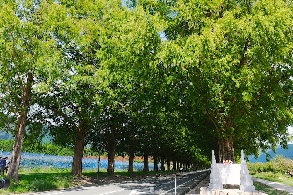 総延長2.4kmにわたり、道の両側に約500本のメタセコイア並木が続くこの道は、サイクリストも多数訪れる大人気の絶景ロード! 円錐型のメタセコイアの木々は春になると爽やかな新緑に包まれ、夏は涼しげな緑、秋は美しい紅葉で覆われ、冬は雪が積もって銀色の世界に。季節ごとに表情が変わり、いつ訪れても見応え満点の場所です。