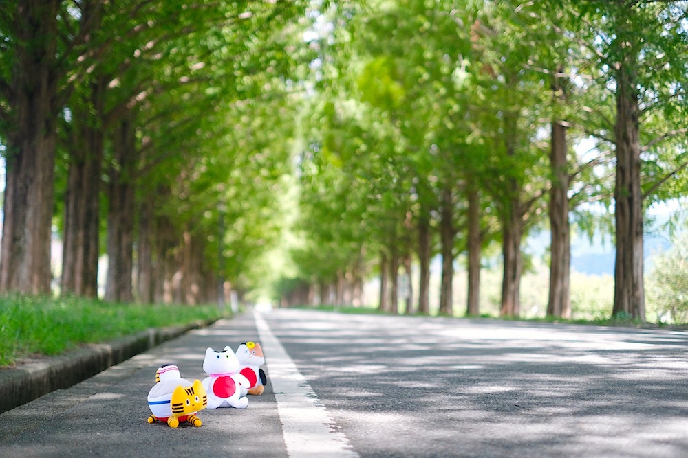びわ湖上部にある海津大崎のビワイチルートから西方面に入り、果物狩りで賑わう『マキノピックランド』へやってきたふねこたち。目の前には『メタセコイア並木』が広がっています!