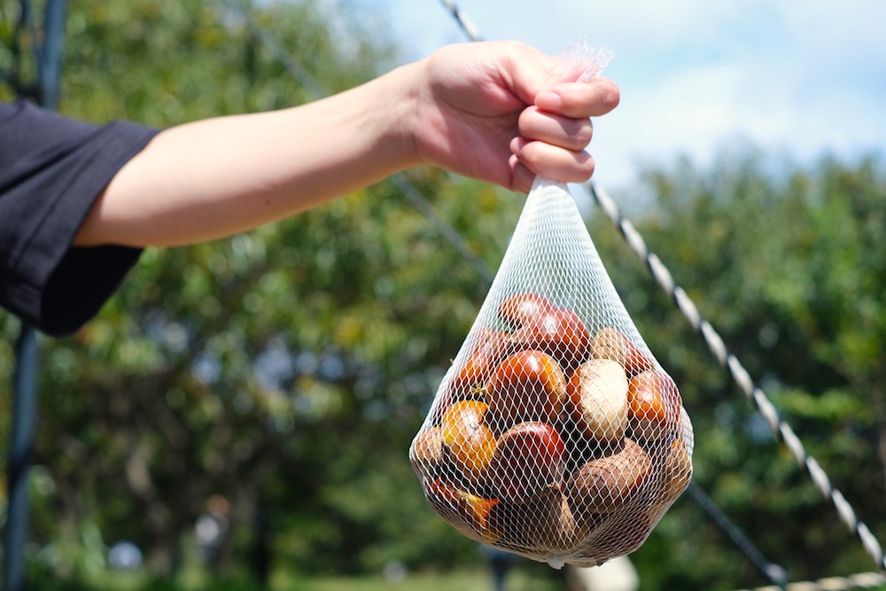 果樹園ゾーンでは四季折々のフルーツが実り、季節に応じてさくらんぼ、ブルーベリー、ぶどう、くり、さつまいも、りんごなどの収穫体験ができ、お子さま連れも楽しそう!