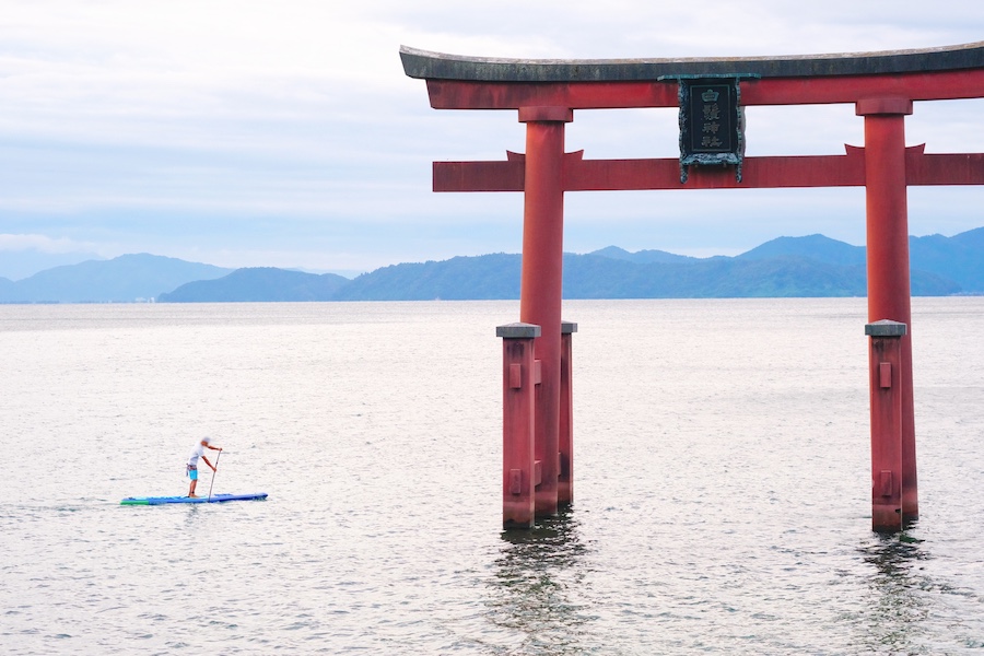 近所にSUP体験施設があるので、タイミングによっては、びわ湖×大鳥居×パドラーという珍しい光景も目にできますよ。