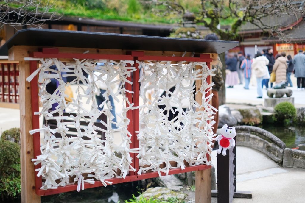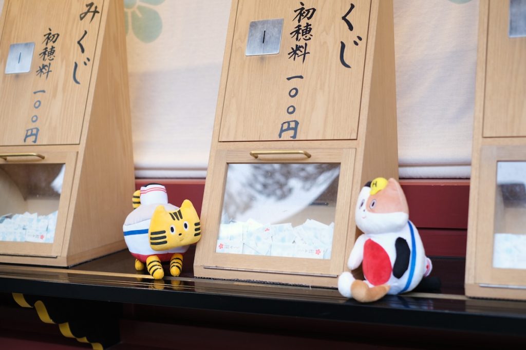 お守りを選んだり、おみくじを引いたり、開運祈願に勤しむふねこたち。
