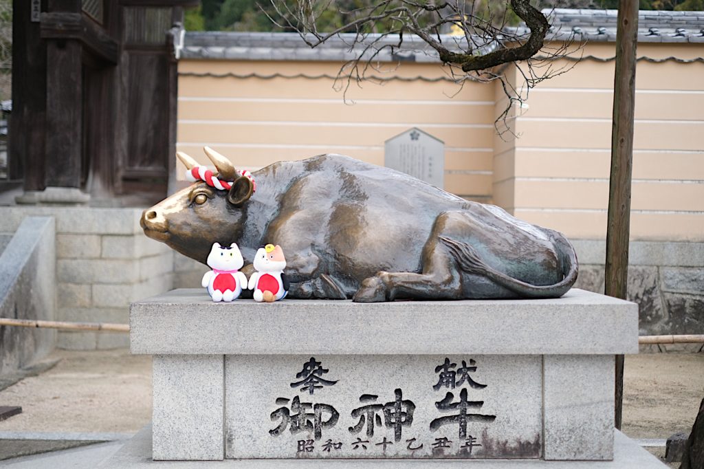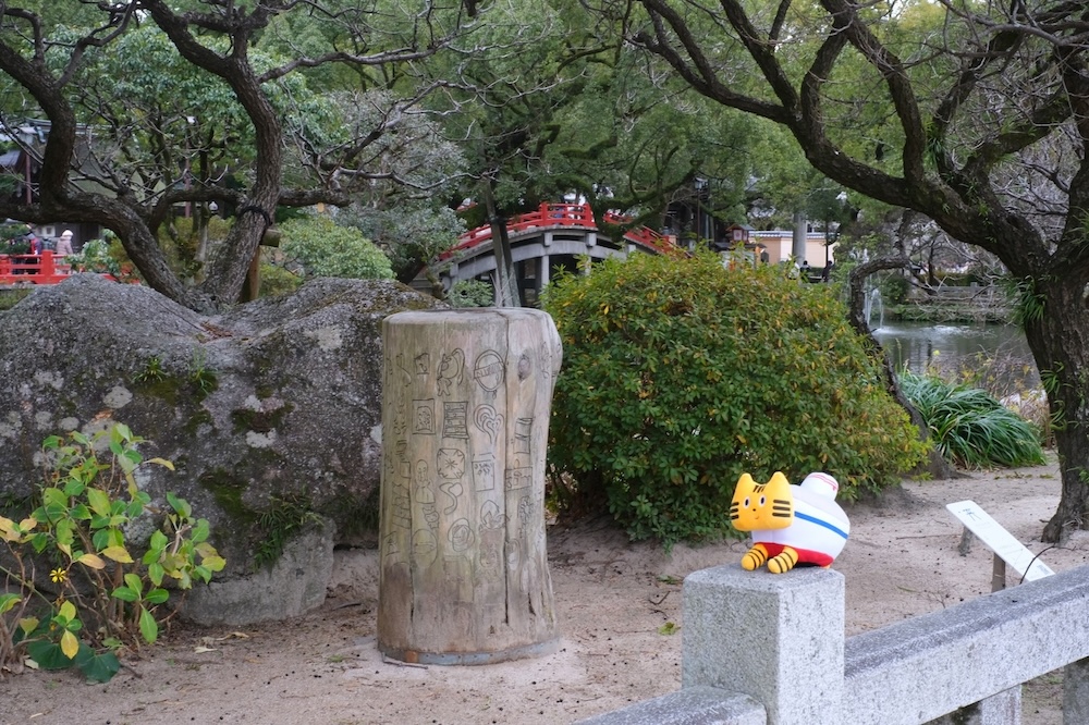 菅原道真公は「学問・文化芸術・厄除けの神様」として知られ、天神さまと呼ばれています。ふねこたちはどうやら、厄除けとともに旅行の安全祈願をしに訪れたようですよ♪