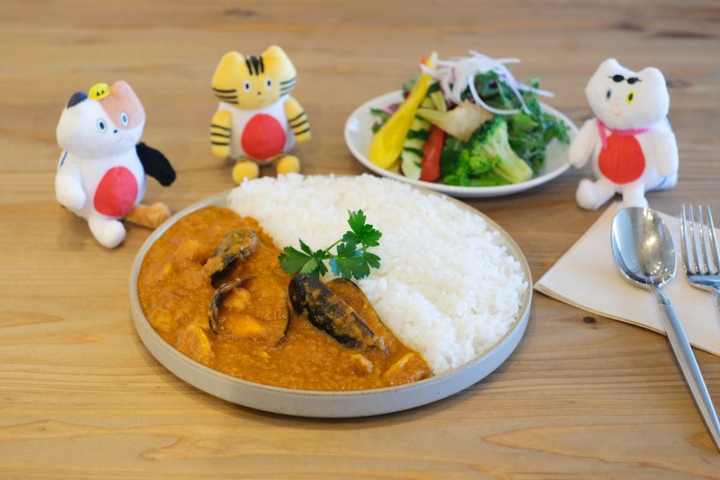 メインディッシュはパスタやリゾット、カレーなど6種類の中から選べ、ふねこはスパイシーシーフードカレーをチョイス♪ ムール貝入りで魚介の旨みが効いた一品です。