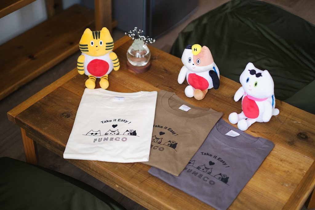 サウナですっきりしたら、オリジナルのふねこTシャツに着替えて寛ぎモードに♪ 好評発売中のTシャツはここでゲット!!