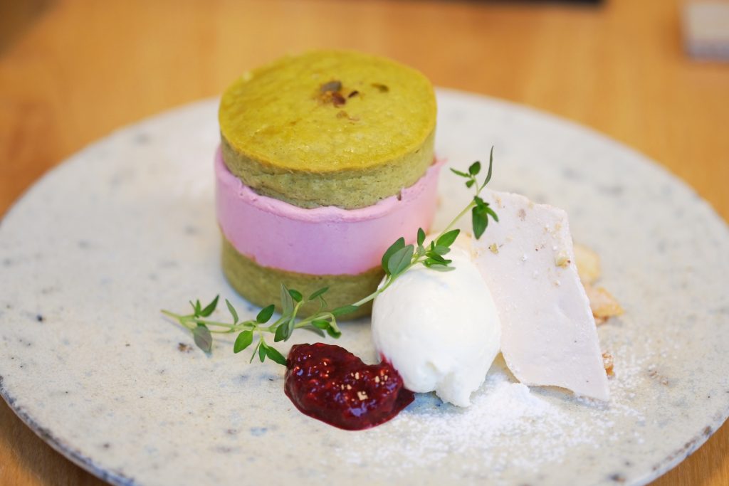 レアチーズケーキをベイクドチーズケーキで挟んだ一品で、ピスタチオ×フランボワーズ、抹茶×黒豆きな粉、チョコレート×ラムレーズンなど、異なる素材と食感の組み合わせを楽しめます。「ツー トオン チーズケーキ」は常時6種類あり、テイクアウトでも可能です。