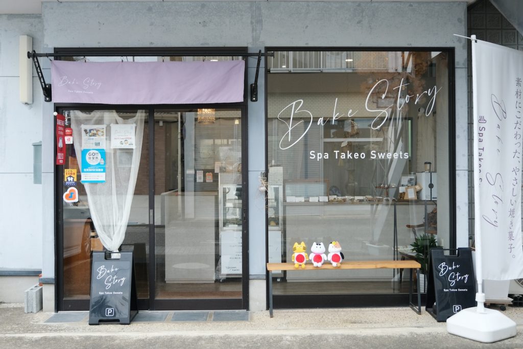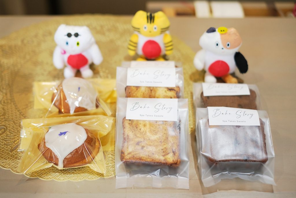 最後にふねこたちが立ち寄ったのは、武雄温泉街にあるテイクアウトの焼き菓子店『Bake Story(ベイクストーリー)』。経験豊富な2人のパティシエが素材にこだわり、丁寧に作り上げたスイーツの数々が人気。そのおいしさを堪能してみましょう♪