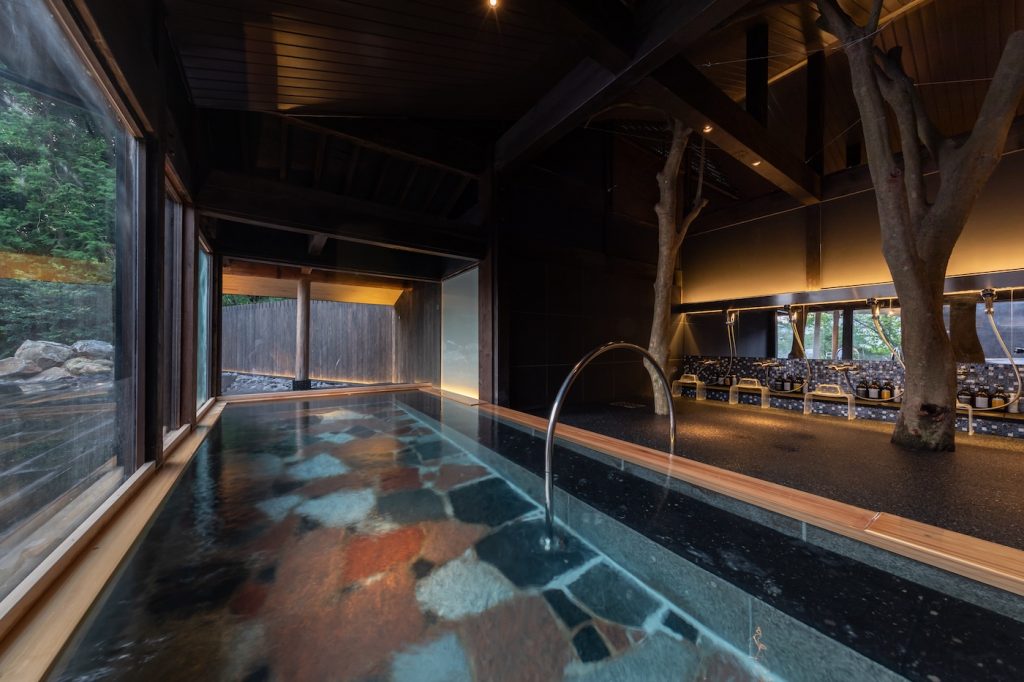 女場は森を望む内湯や露天風呂、ドライサウナ、薬草スチームサウナを完備。