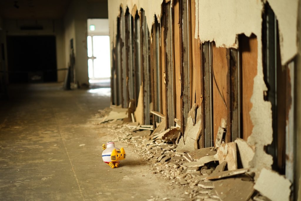 アートMAPを頼りに辿り着いた先に、展示作品「廃墟の湯屋にあるメガリス」がお目見え。時間が止まったような古い浴場に未来的なアートワークが仕掛けられ、さまざまな時空が交差する不思議な空間となっています。
