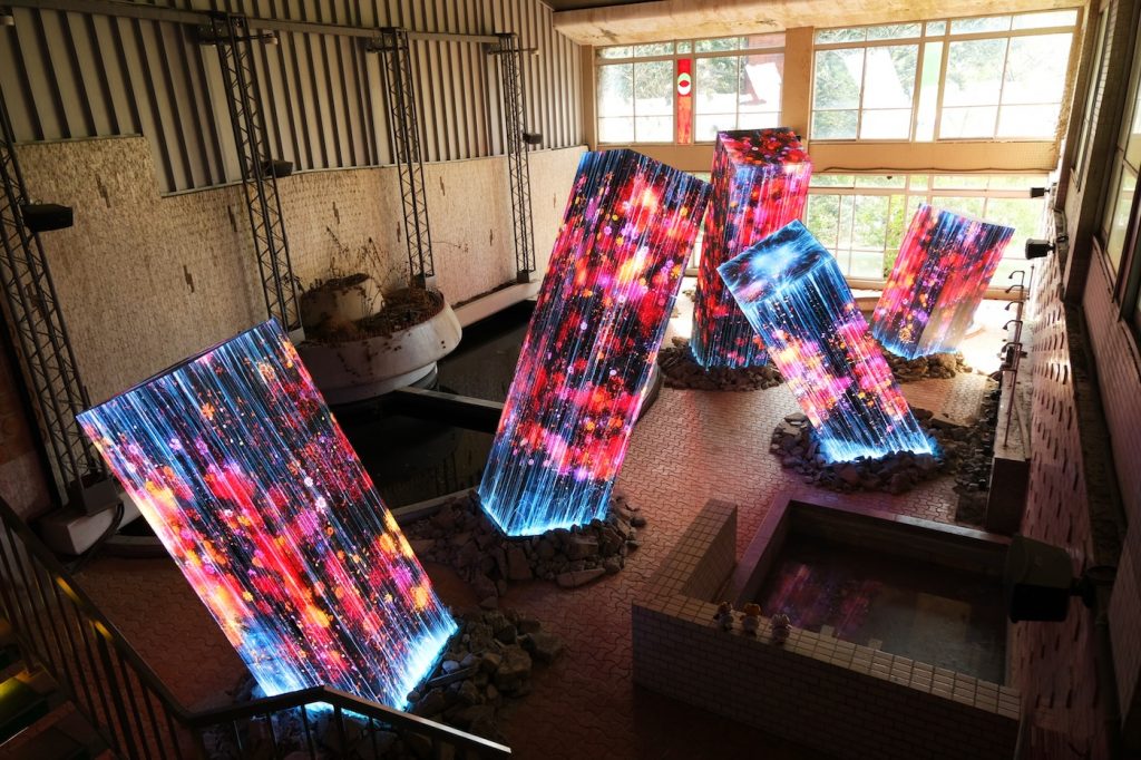 サウナを思う存分楽しんだ後は、アート集団・チームラボの常設展「チームラボ 廃墟と遺跡:淋汗茶の湯 – ジーシー」を鑑賞しましょう。ホテルエリアから廃墟エリアへ、探検気分で進んでいきます♪