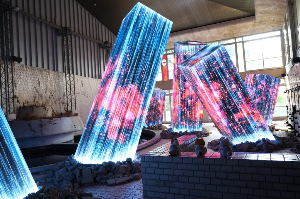 錆びついた廃墟空間と鮮やかなアートワークのコントラストがすごいですね…。この他にも日没後に楽しめる作品もあるので、サウナとともにアート鑑賞も楽しんでみて。