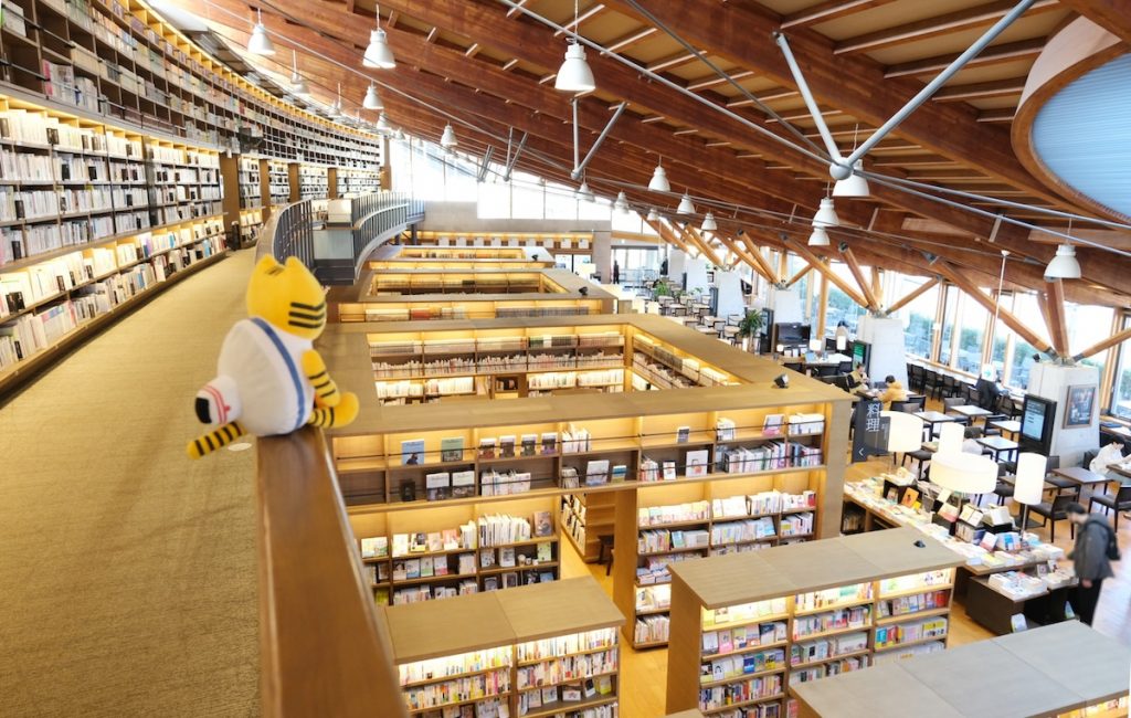 館内は海外のライブラリーのように広々としていて、評判通り空間がオシャレ!! 図書の貸出はもちろんのこと、蔦屋書店やカフェを併設し、会話もできるスペースも設けられているので、他の公共の図書館とは一味異なり、色々なシーンで楽しめる施設になっています。