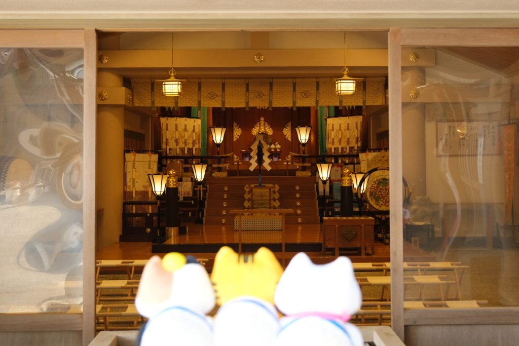 本殿にて、二拝二拍手一拝でお参りを。御祭神に猿田彦大神が祀られているので、縁結び・夫婦円満・交通安全などのご利益があるそうです。