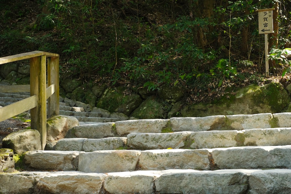 正宮参拝後は、境内の別宮へ。98段の石段をのぼり、豊受大御神の荒御魂を祀る外宮の『多賀宮』にやってきました。正宮に次ぐ大きさを誇り、目の前の大きな樹木からも猛々しい力強さを感じます…!