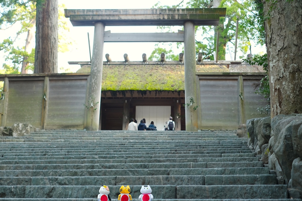 約2,000年前に御鎮座された天照大御神は、皇室の御祖先の神であり日本人の総氏神。厳かな空気感と神聖さを感じる正宮を目の前に、感無量のふねこたち…。