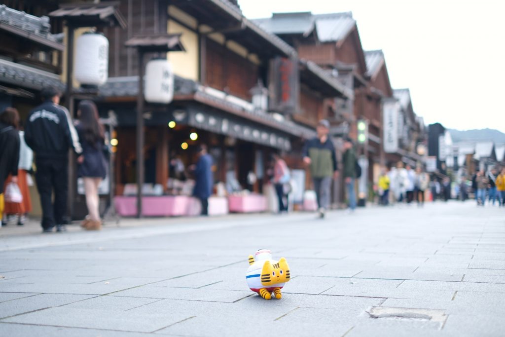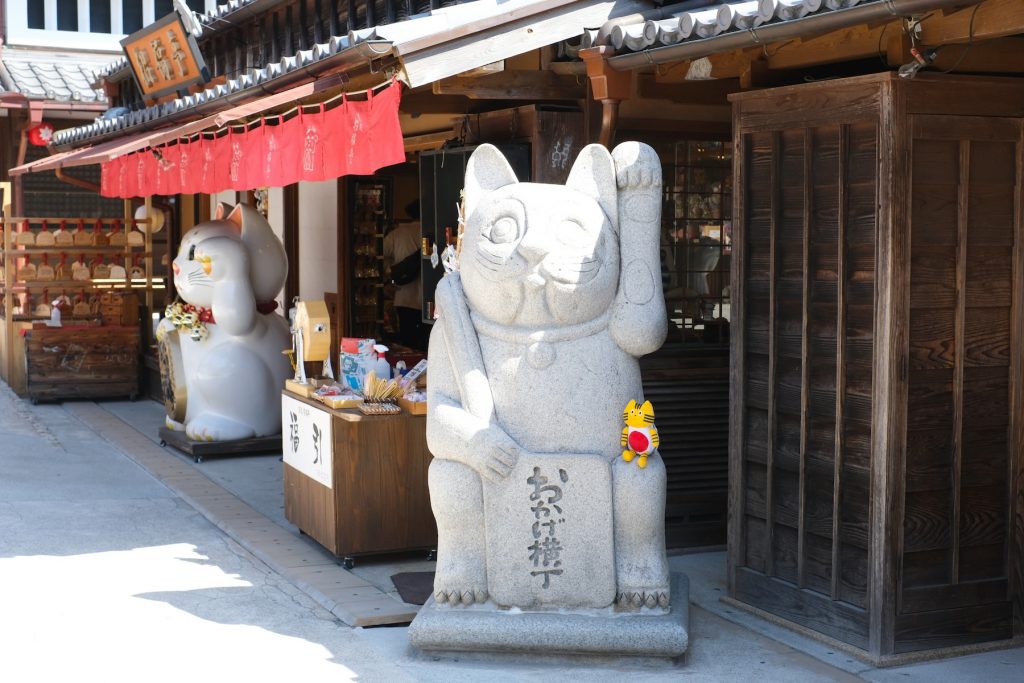 おかげ横丁のフォトスポットにもなっているのが、招き猫の置物の数々。阪九フェリーで暮らすふねこたちのように、おかげ横丁にもさまざまな猫(招き猫)が暮らしているようですね♪