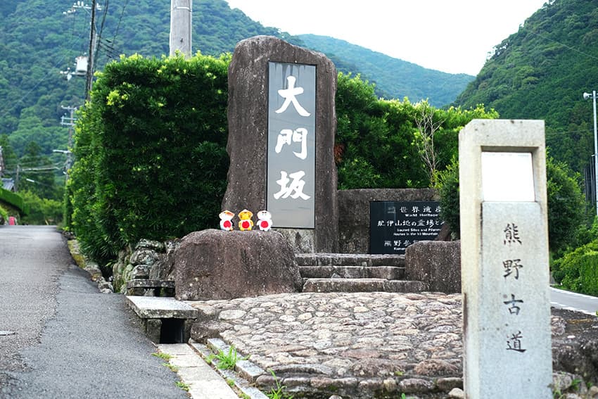 平安時代から続く巡礼の道・熊野古道の⼀部であり、熊野那智⼤社へと続く『⼤⾨坂』の⼊⼝にやってきました!名⾼い皇族や貴族、そして信仰⼼のあつい⼈々が精神的な浄化を求め、この道を歩いたと⾔われています。今も多くの観光客が訪れ、往古の熊野詣に思いを馳せながら坂道をのぼっています。