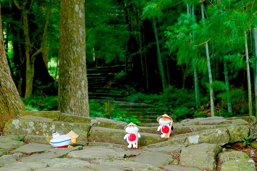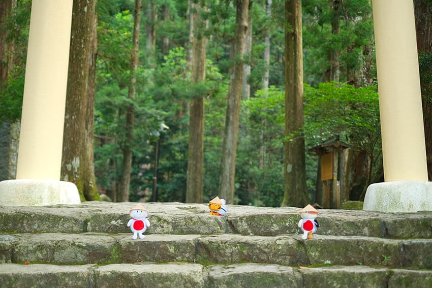 ⼤阪の泉⼤津から⾞で約3時間のドライブを経て、和歌⼭県が誇る世界遺産・熊野古道を巡っているふねこたち。