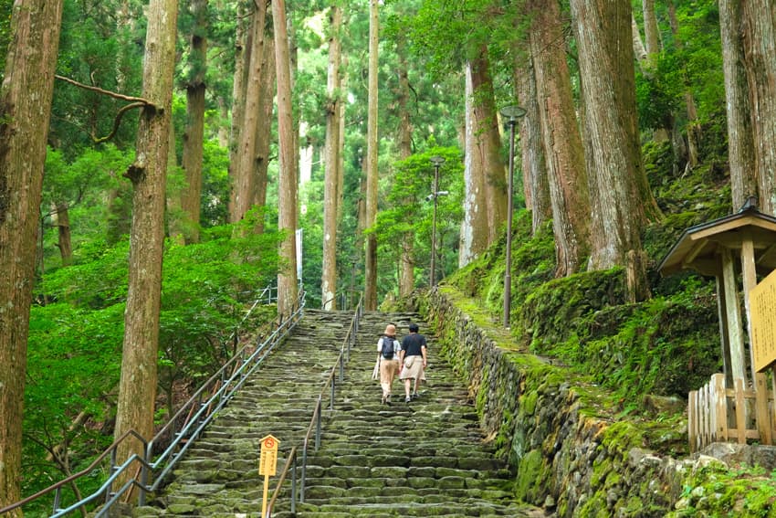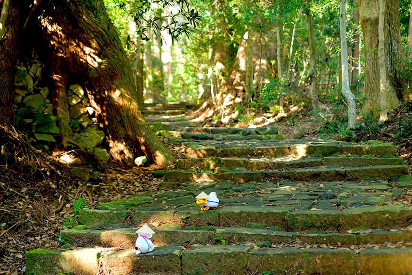 奥へ奥へとのびる⽯畳の階段と緑に包まれた神聖な空気。熊野古道の思い出に、仲良く揃ってハイチーズ♪