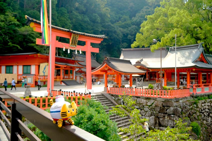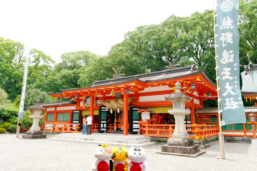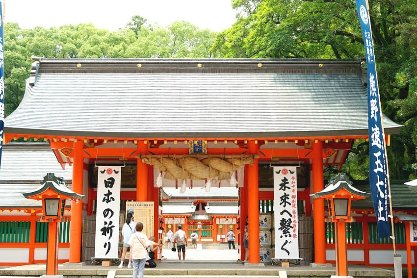 夫婦2⼈の神様を祀る、縁結びで有名な『熊野速⽟⼤社』。