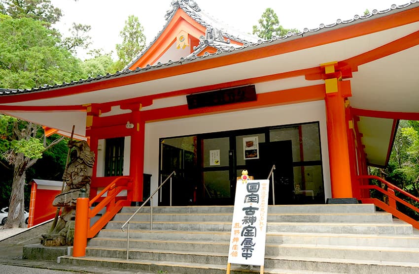 参拝後は境内にある「熊野神宝館」も⾒学しましょう。室町時代の国宝古神宝をはじめ、多くの国指定重要⽂化財を鑑賞できます。