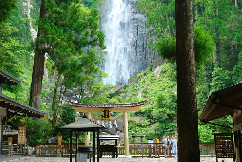 那智の滝は、熊野那智⼤社から徒歩圏内の別宮『⾶瀧神社(ひろうじんじゃ)』にあります。滝そのものを祀っているので、本殿や拝殿がない珍しい神社です。