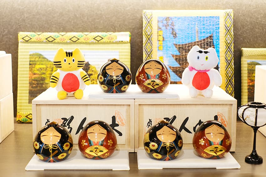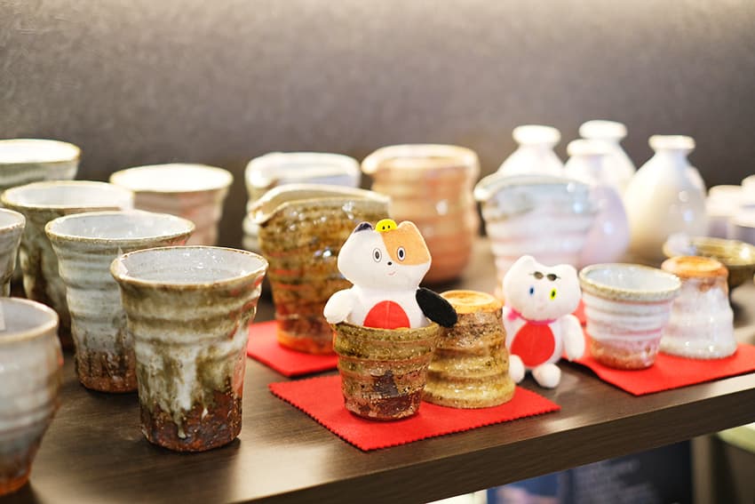 ころんとしたフォルムがチャーミングな⼤内⼈形、ぐい呑みや湯呑みにぴったりな萩焼の器もありますよ。
