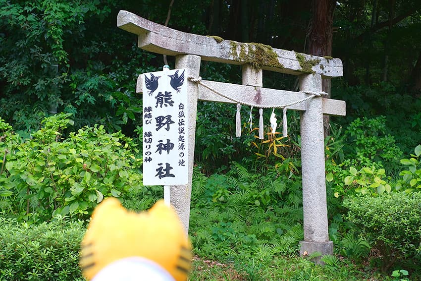 ⼭⽔園の⽬の前に、⽩狐伝説の発祥の地と⾔われる熊野神社の⿃居を発⾒!Vol.59の旅で熊野神社の総本宮『熊野本宮⼤社』を参拝したふねこたち、なんだか縁を感じずにはいられませんね…!
