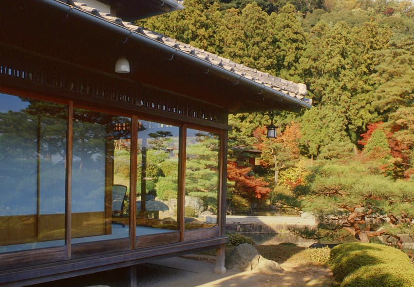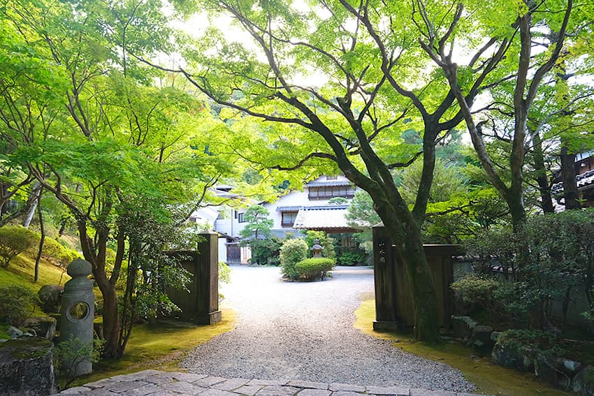 ⼭を借景にした⽇本庭園は、「池泉式回遊式庭園」「枯⼭⽔」「露地(茶室周りの茶庭)」の3つの様式で構成されています。みずみずしい空気感、⾃然が伝えてくれる四季折々の機微、侘び寂びを感じる繊細で美しい設え、⼼落ち着く静かな環境。深い趣が随所に散りばめられて、どこを切り取っても絵になる景⾊。