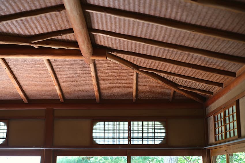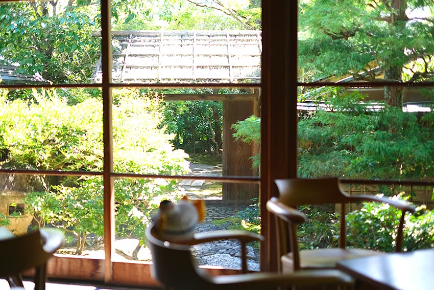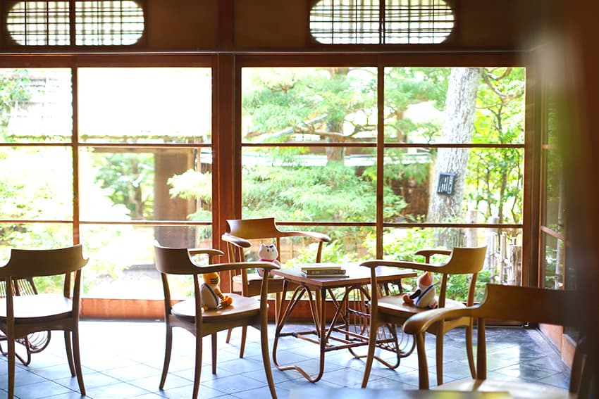 ⾼度な技術と遊び⼼が融合した数奇屋造りの空間は、床や壁、天井、下地窓などの隅々から⼤正・昭和のロマンが漂っています。庭園を望む窓際の席で、本を読みながらゆっくり過ごす。これだけで⼼が洗われる気分。