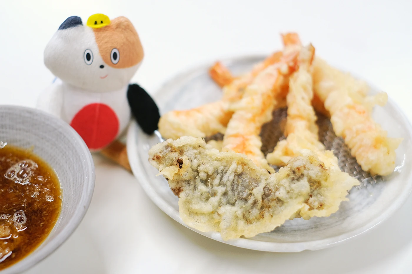 おこづかいの使い道を考えながら、みけやんは単品のくじら天(160円)も追加オーダー。他ではなかなか味わえない貴重な一品に目をつけるとは、さすが食いしん坊♪
