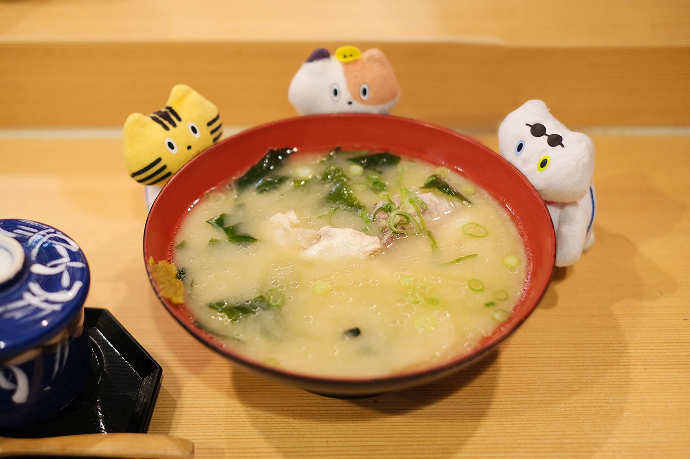 さらにうれしいのが、セットのあら汁と茶碗蒸し。あら汁は手のひらからはみ出るほど大きな椀で提供され、魚の出汁と旨味がギュッと凝縮した本格派。茶碗蒸しのなめらかな口当たりも、まるで高級料亭のよう。
