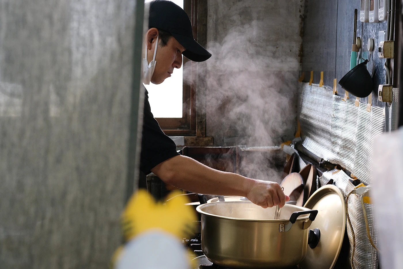 バックヤードでは、ちょうどぬか炊きが煮込まれているところ。鍋から立ちのぼる湯気に、ふねこも大興奮。
