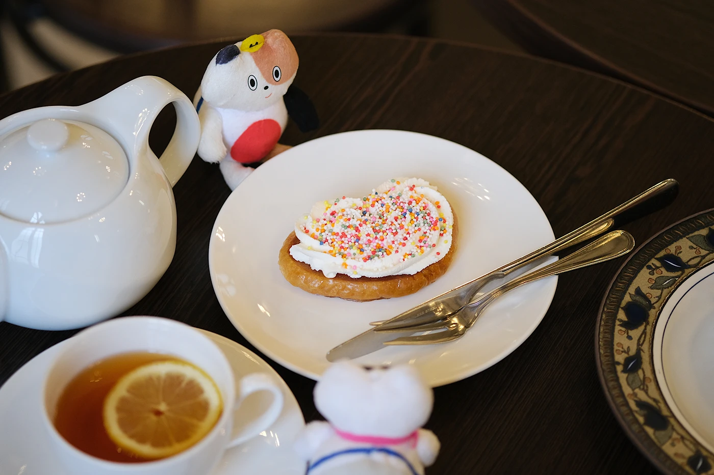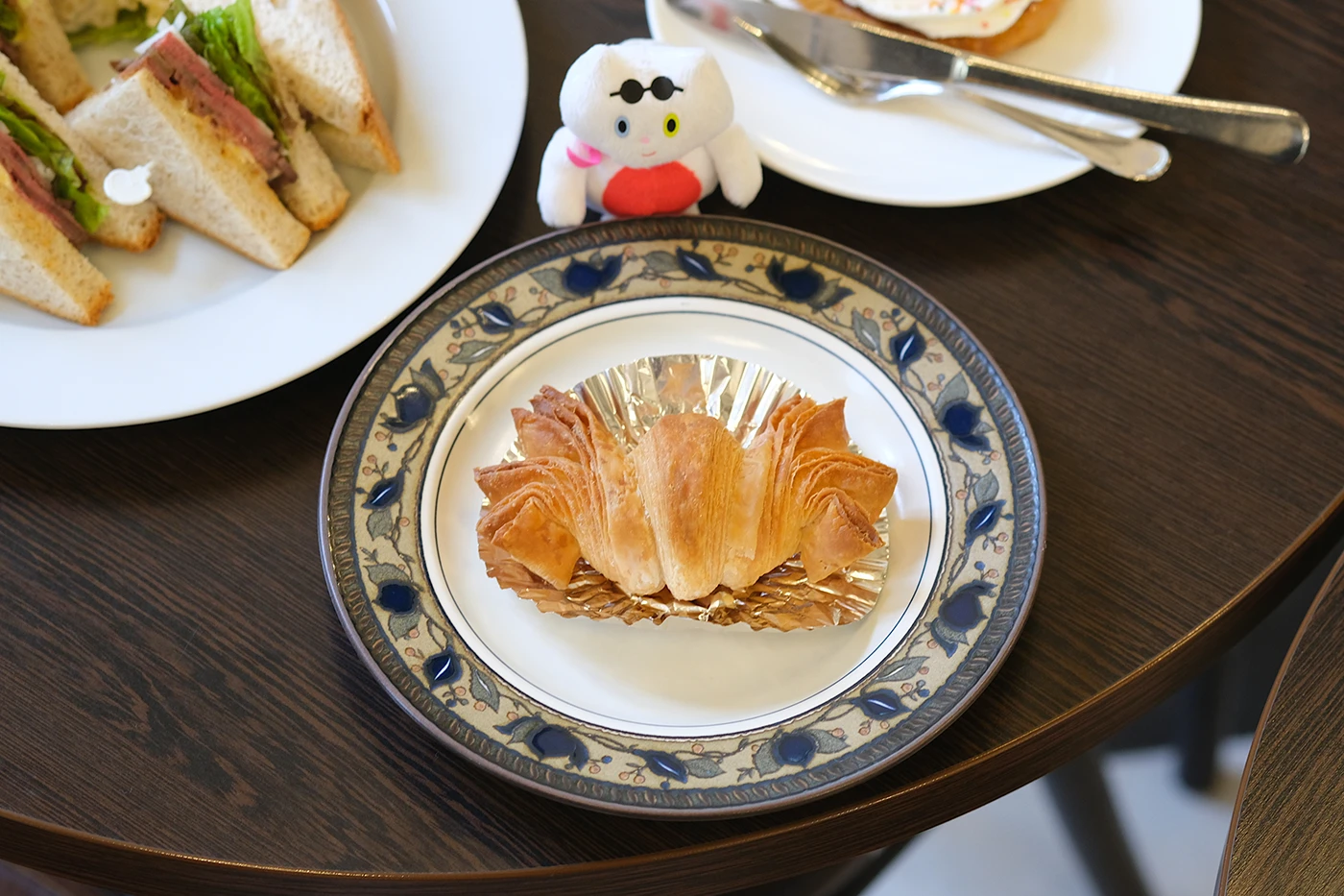 そして、リボン型のクロワッサンも味わっておきたい⼀品。外はサックリ、中はしっとり、さらにバターの⾹りがふわり。⾹り豊かなレモンティーとの相性も抜群です!