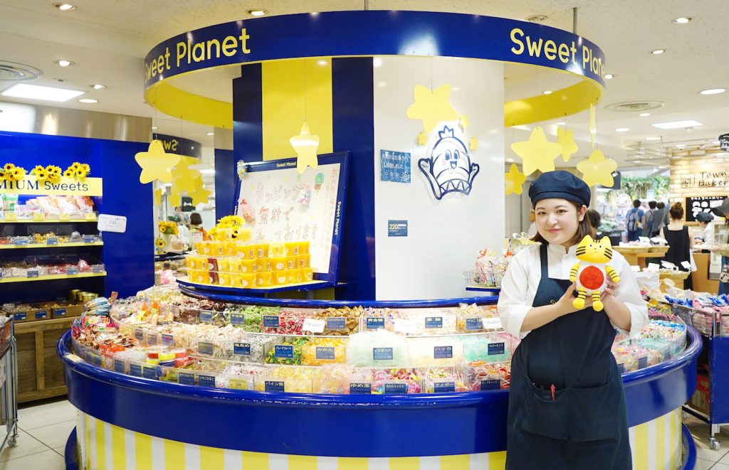 本館地下1階にある『Sweet Planet』は、創業約50年の老舗菓子店。2年前にリニューアルして、子どもも大人もワクワクする売り場に生まれ変わりました! ゆっくりと回転するラウンド菓子が懐かしく、自然と童心にかえっちゃいますよね♪ 「かわいいオヤツがある!」と思ったら、おっと、ふねこが混じってました(笑)。