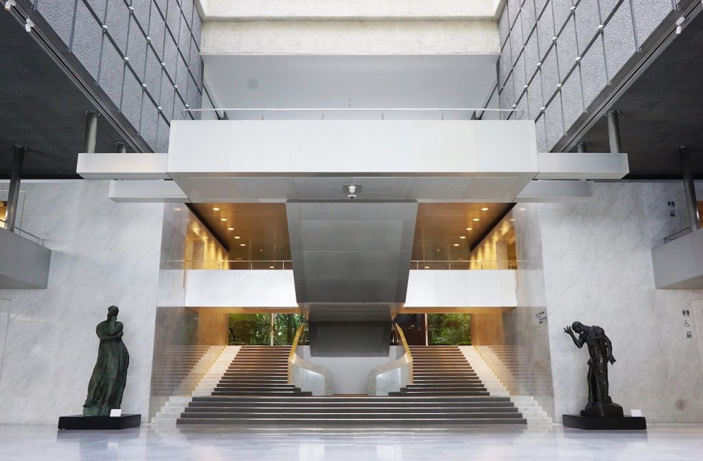 ヨーロピアンアートとモダニズム建築が融合するエントランスも圧巻! 吹き抜けの大空間は静寂に包まれていて、別世界に飛び込んだ感覚を味わえます。ちなみに、このエントランスホールは某人気映画のロケ地としても使用されていたことでも有名(ヒントは「デ」から始まるあの映画)!