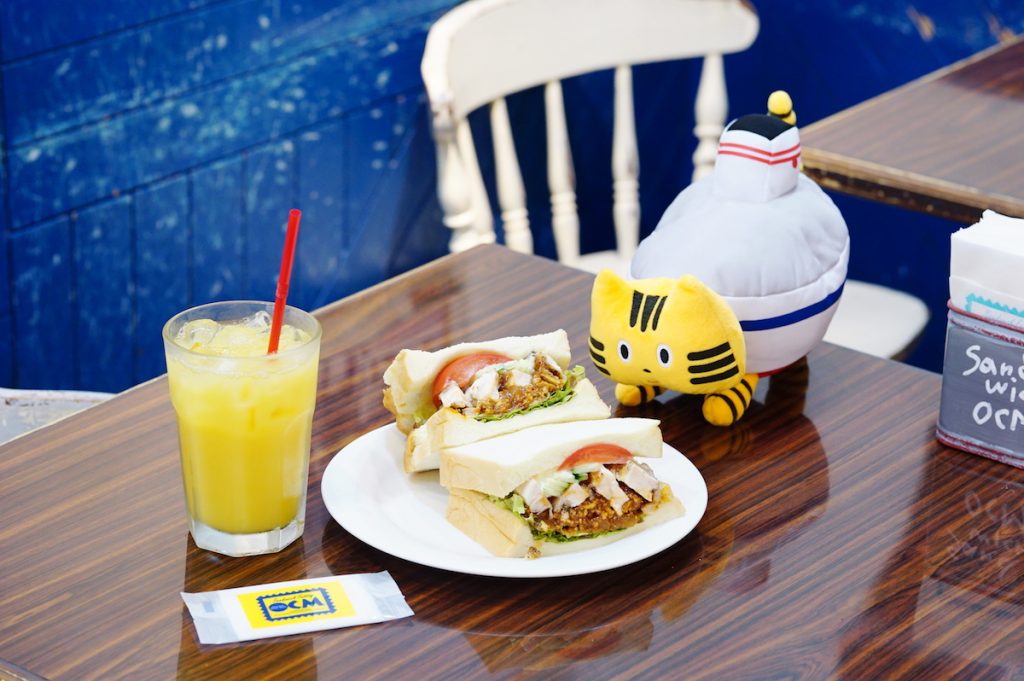 アメリカンテイストの看板や内装がワクワクさせる『サンドイッチファクトリーOCM(オーシーエム)』。小倉のソウルフードと呼ばれているそうで、週末のランチタイムには店外の階段まで行列ができることもあるくらい人気を誇っています。